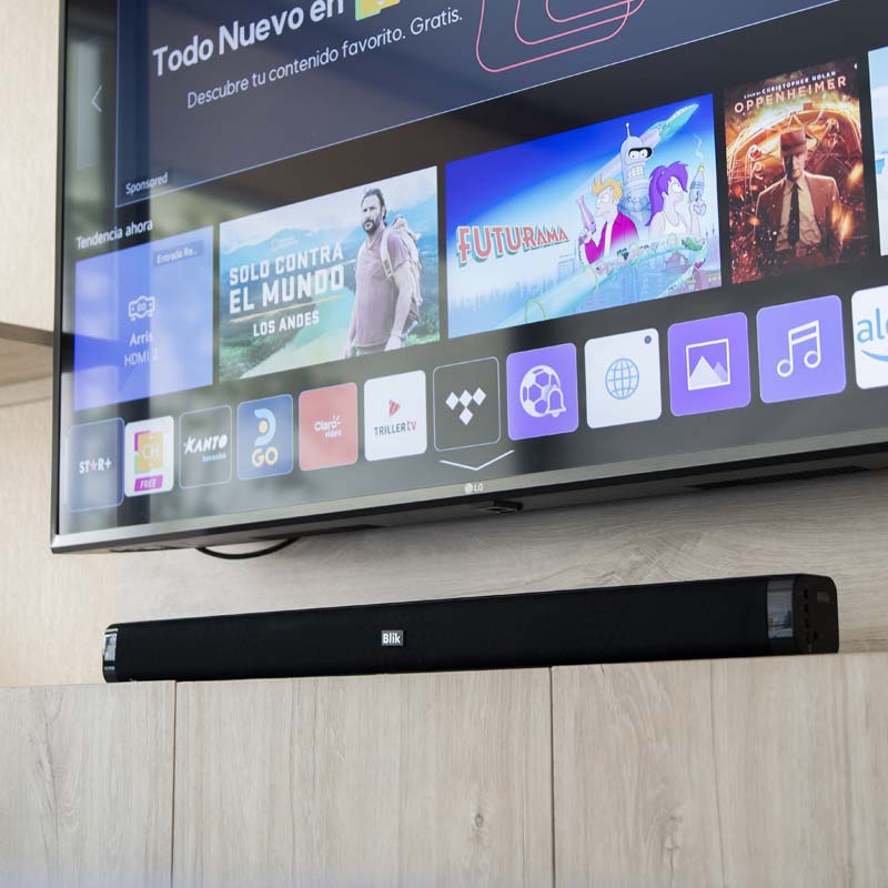Puedes poner la barra de sonido donde tú quieras. Su diseño minimalista y estético se encargarán de que luzca en todos los rincones de tu casa.